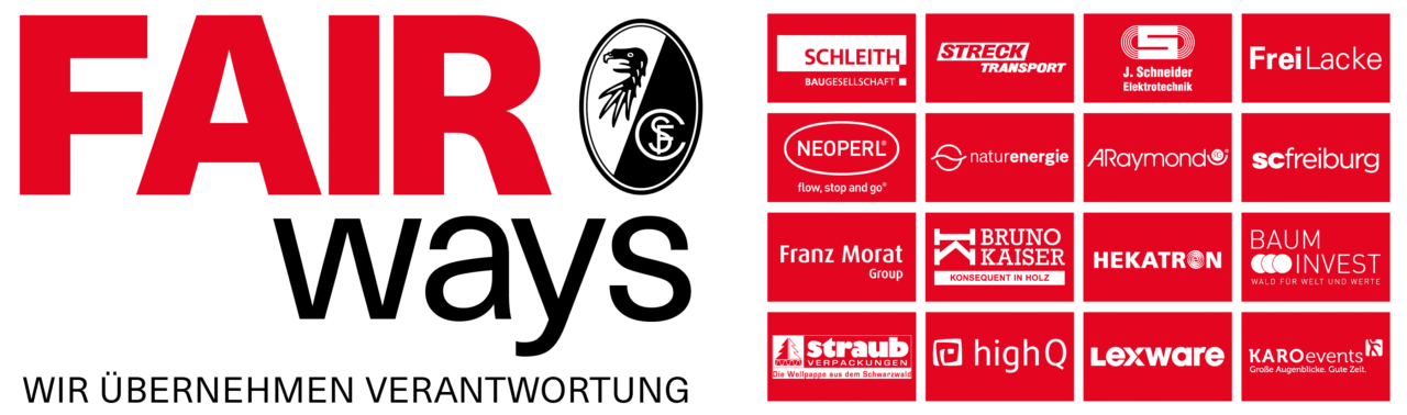 Unter der Dachmarke „FAIR ways – Wir übernehmen Verantwortung” vereint der SC Freiburg seit der Saison 2011/12 Partnerinnen und Partner, die sich – wie wir – für Umwelt, Nachhaltigkeit und gesellschaftliches Engagement einsetzen. Diese Plattform schafft Sichtbarkeit für Initiativen, die aktiv Zukunft gestalten.